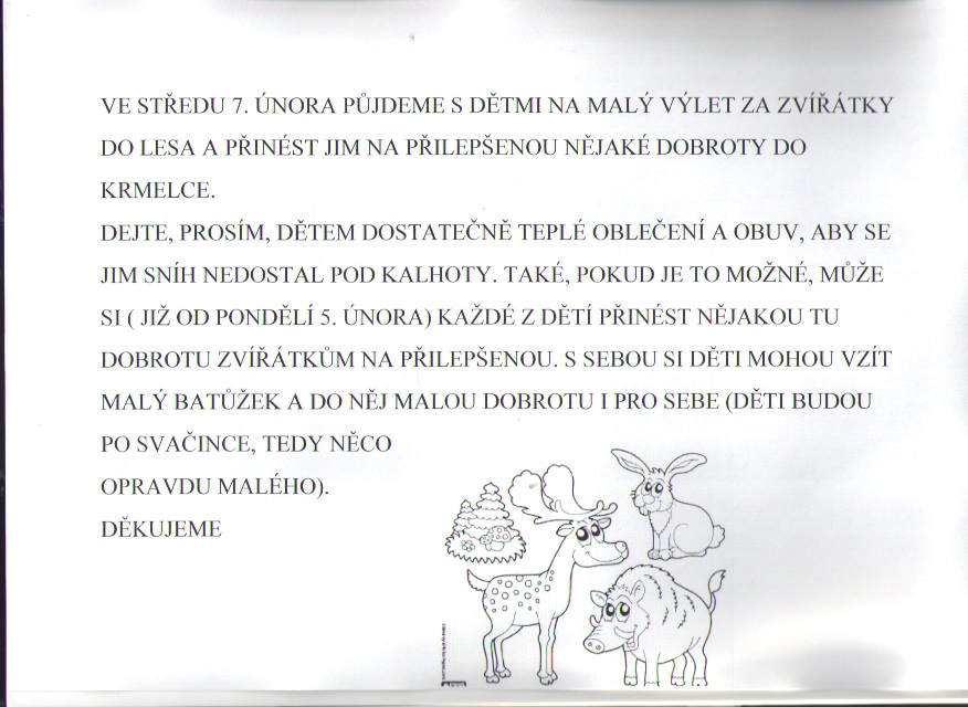 Ve středu 7. 2. půjdeme za zvířátky do lesa a ve čtvrtek 8.2 nás čeká v kině představení Tajný život mazlíčků.